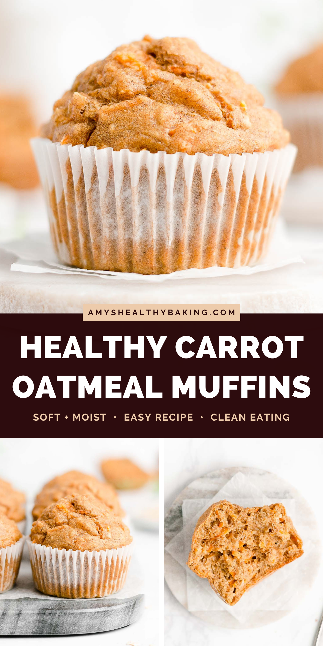 Ready to dive into your warm, cozy, moist, soft, oh so irresistible muffins? And when you make your own, remember to snap a picture and share it on Instagram using #amyshealthybaking and tagging @amyshealthybaking IN the photo itself! (That guarantees I’ll see your picture! 🙂 ) I’d love to see your healthy carrot cake oatmeal muffins!